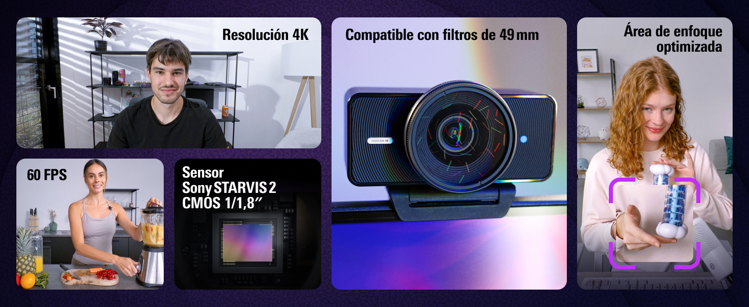 - Claridad Ultra HD en cada fotograma - Captura vídeo cristalino en 4K a 60 FPS, perfecto para streaming, creación de contenido o videoconferencias